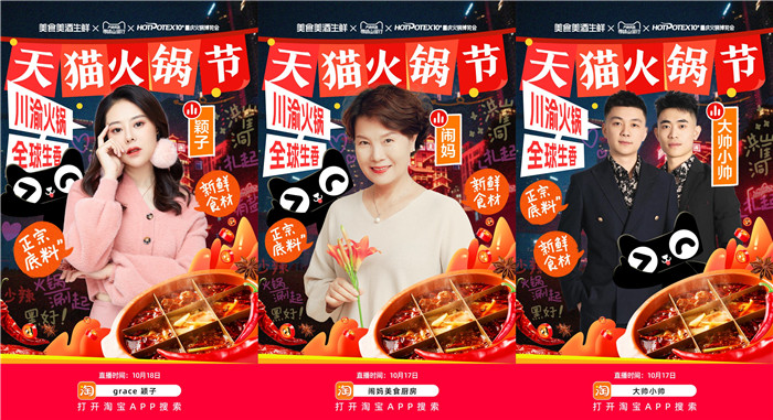与此同时,淘宝天猫火锅节线上会场同步开启。消费者在10月17——24日,可通过手机淘宝搜索“双11火锅节”,一键直达活动专区,参与直播互动与优惠选购。线上专区汇聚全国优质火锅品牌产品,覆盖从锅底到餐桌的全链路消费场景,满足日常烹饪、家庭聚餐与节庆礼赠等多元需求。