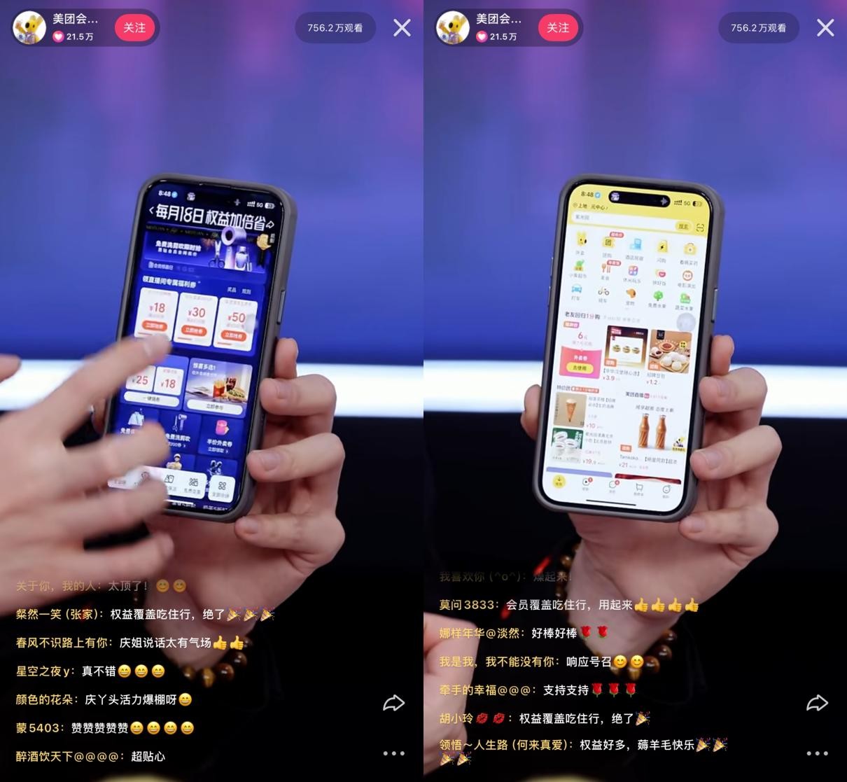 这种通过连麦完成的价值释放,大幅降低了用户理解和使用会员权益的门槛,会员权益从“知道有”变成“现在就能用”;对美团而言,多品类服务在同一内容结构中被协同激活,有效提升了会员权益的使用效率。